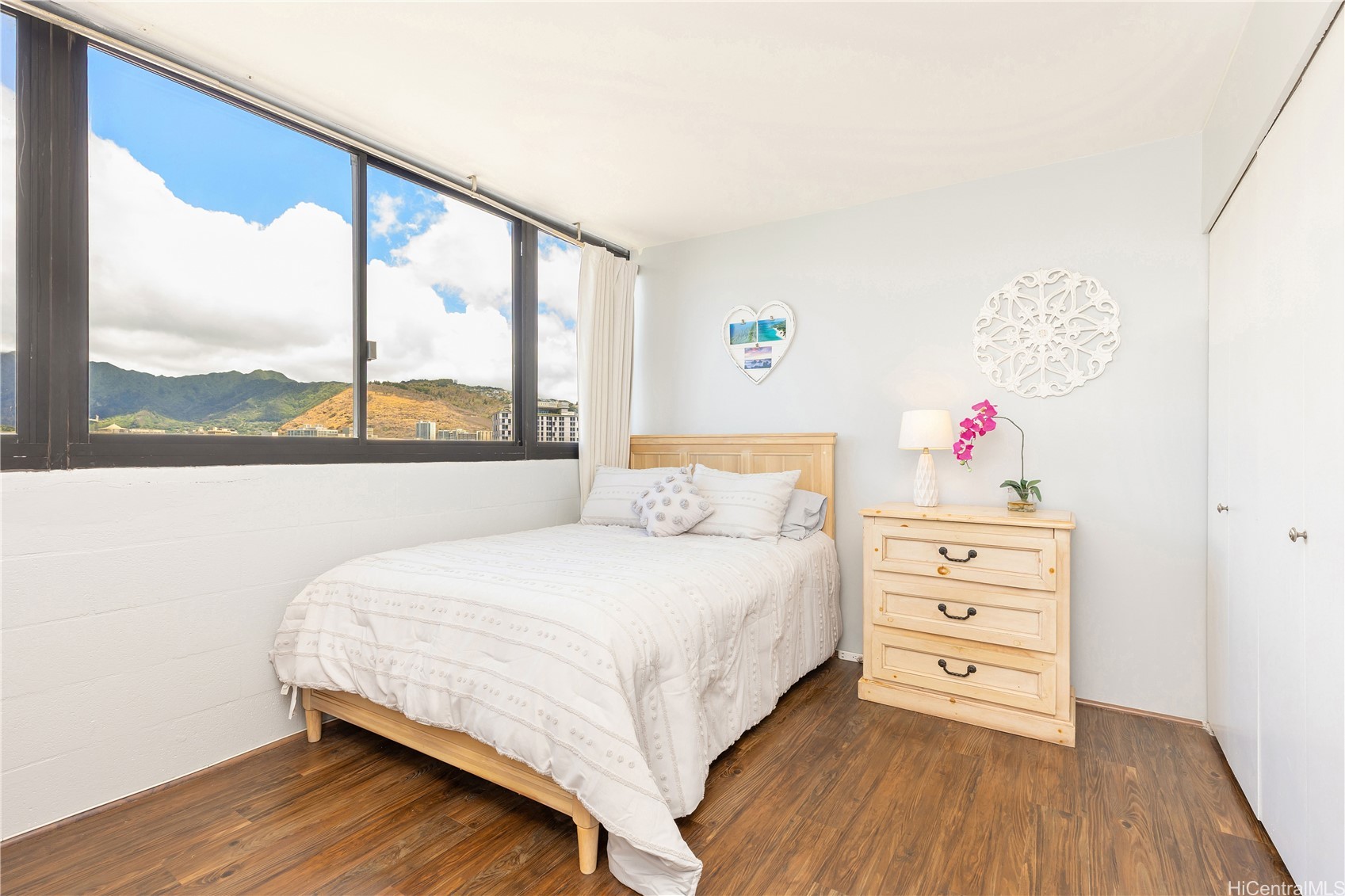 Beautifully renovated split-level condo in the heart of Moiliili. This stunning split-level 1-bedroom, 1-bath end unit offers style, comfort, and convenience in a boutique secured building. Enjoy mountain views, a peek-a-boo glimpse of Diamond Head, and sweeping city views from your private space. Inside, you'll find amazing renovations throughout -- including a modern kitchen, updated bathroom. The unit also features in-unit washer and dryer, ample in-unit storage closet, and one covered parking stall. Perfectly located near popular restaurants, freeway access, the University of Hawaii at Manoa, Waikiki, and beautiful beaches, this home blends vibrant city living with the warmth of a close-knit neighborhood.